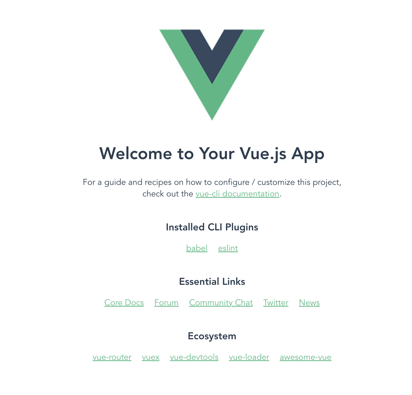 pnpm run serve // or npm run serve // or ...`localhost:8080`에 접속하여 아래와 같은 화면이 보여진다면 프로젝트가 정상적으로 생성된 것이다.